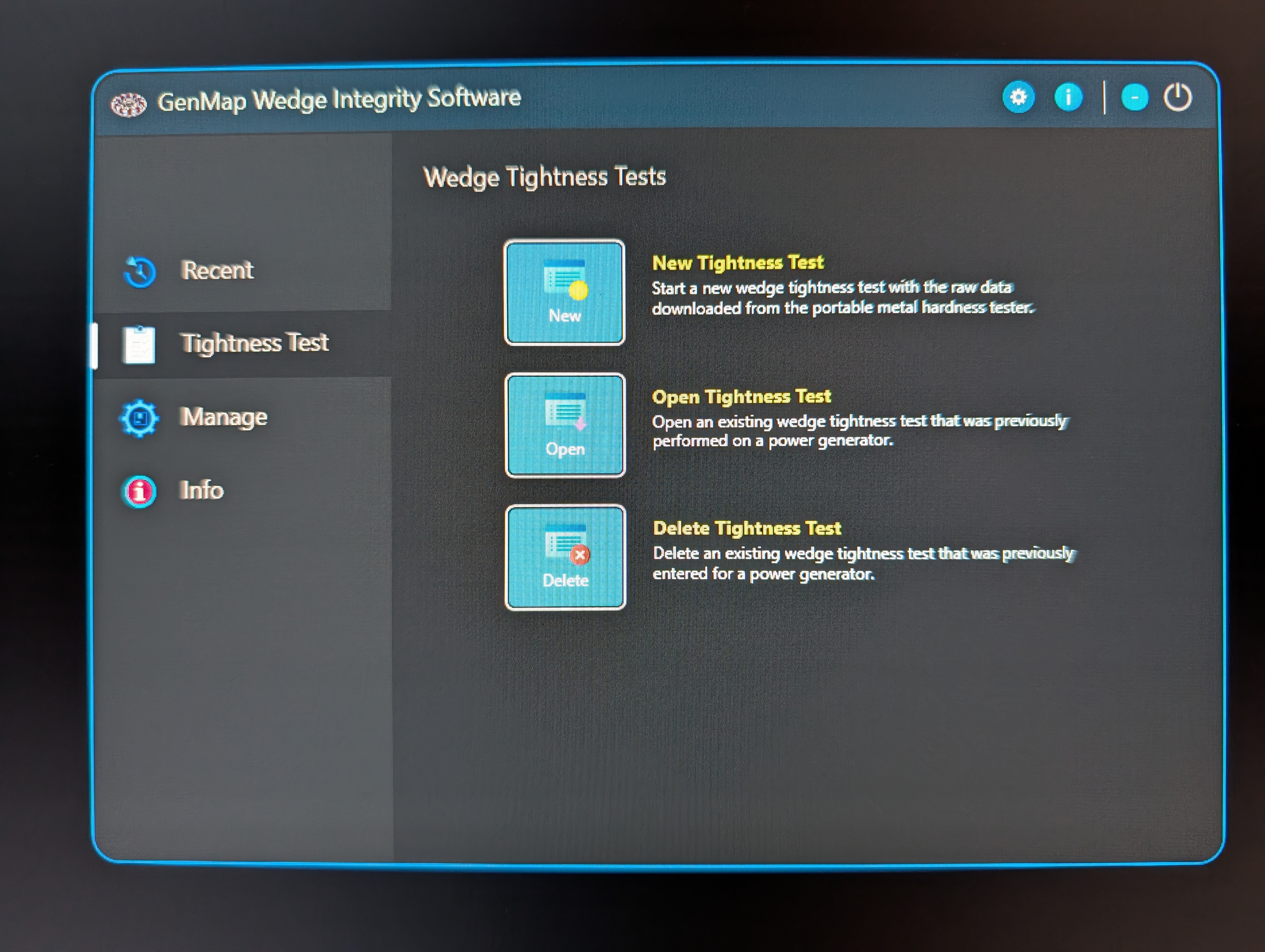 State of the art wedge integrity testing software created by Cyosoft Information Systems, Inc. that provides maintenance of the wedge integrity test data gathered by the metal hardness tester.